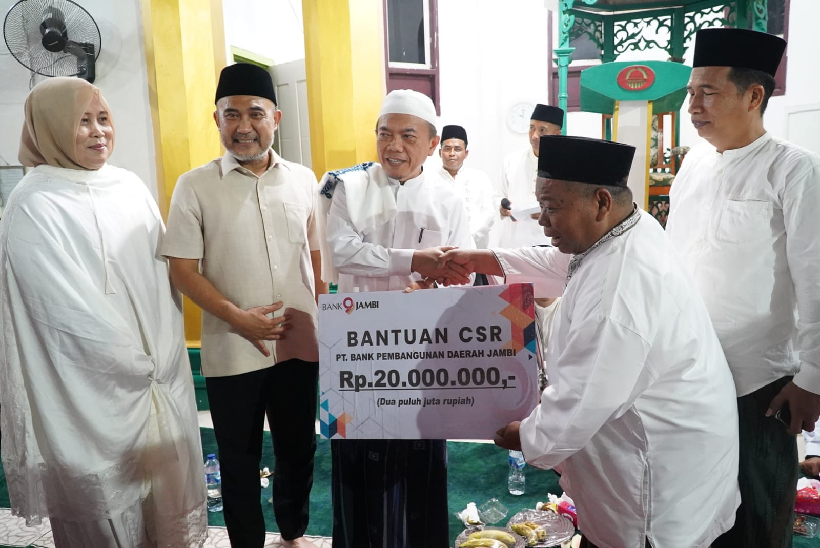 “Kita ingin pembangunan yang diperjuangkan ini benar-benar untuk kepentingan masyarakat luas, bukan untuk kepentingan pribadi. Akses yang baik akan mengangkat ekonomi warga,” ujarnya. Pada kesempatan tersebut, Pemerintah Provinsi Jambi juga menyerahkan sejumlah bantuan. Bantuan CSR Bank Jambi dari Pemerintah Provinsi Jambi sebesar Rp20 juta disalurkan untuk Masjid Al Falah, sementara Pemerintah Kabupaten Bungo melalui CSR Bank Jambi turut memberikan bantuan sebesar Rp10 juta untuk masjid yang sama. selain itu, BAZNAS Provinsi Jambi memberikan bantuan kepada 30 orang fakir miskin serta satu unit kursi roda bagi warga yang membutuhkan. Melalui program ASN Peduli Stunting, turut disalurkan 20 paket bantuan bagi keluarga berisiko stunting. Setiap paket berisi beras 5 kilogram, telur satu karpet, kacang hijau 1 kilogram, dan biskuit sebagai bentuk kepedulian terhadap peningkatan gizi masyarakat.